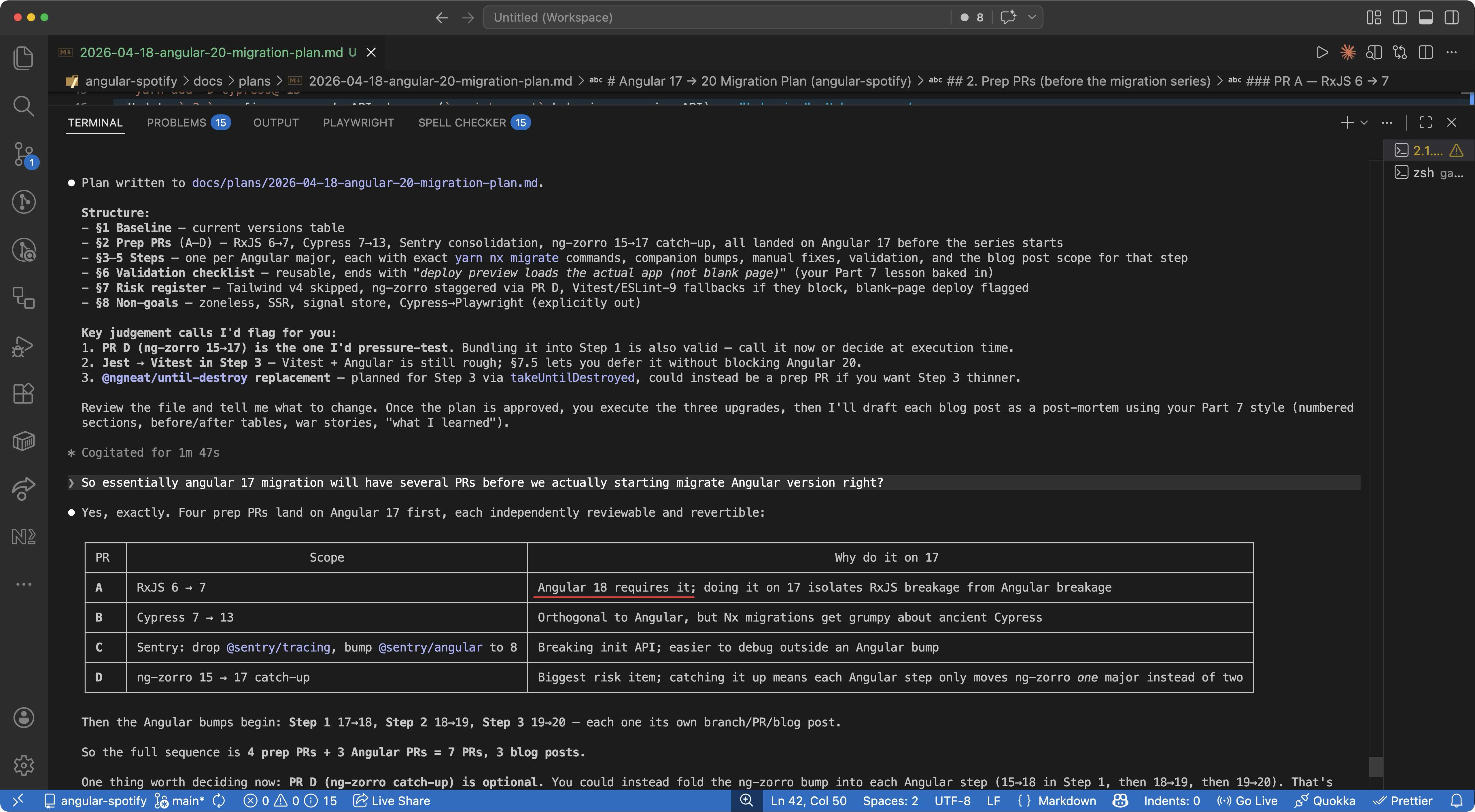 Same opening move as Part 7 of Jira Clone. I started with the plan, not the code. First prompt was roughly: Plan Angular 20 migration. I also want to write a blog post. Read my existing post to match the style.